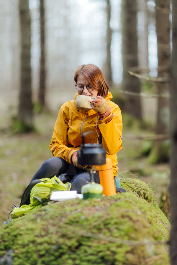 Retkillään Nykänen juo aina teetä. Sitä varten hän kantaa mukanaan pientä kaasukeitintä, jolla on näppärä valmistaa ruokaakin.