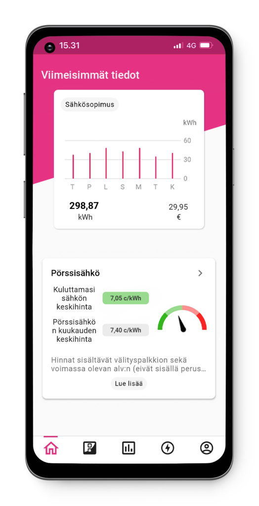- Pystyt ajoittamaan kulutustasi halpoihin hetkiin eli viikonloppuihin ja yöhön. Esimerkiksi lataat sähköautoa yöllä ja saunot viikonloppuisin.
