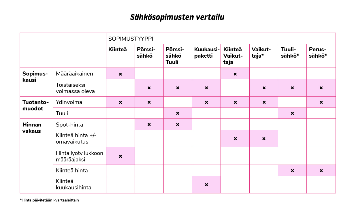 - Kiinteähintaisen ja spot-hintaisen sähkön väliltä.