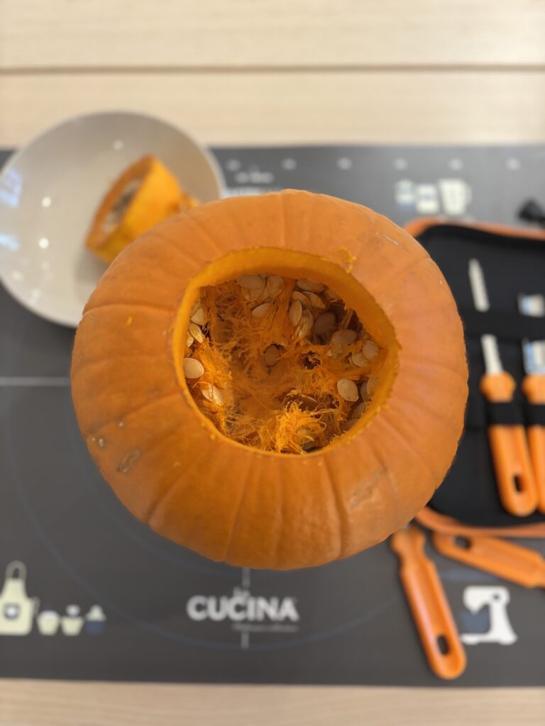 - Fruktköttet i en stor pumpa lossnar smidigt med en elvisp.